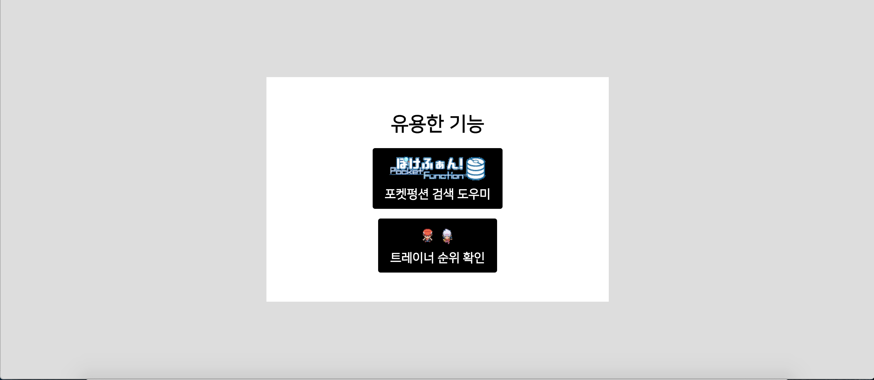 현재 포케모음에서 제공하는 부가 기능은 2가지로, 포켓펑션(노스카) 검색 도우미와 트레이너 순위 확인 기능이 있습니다.