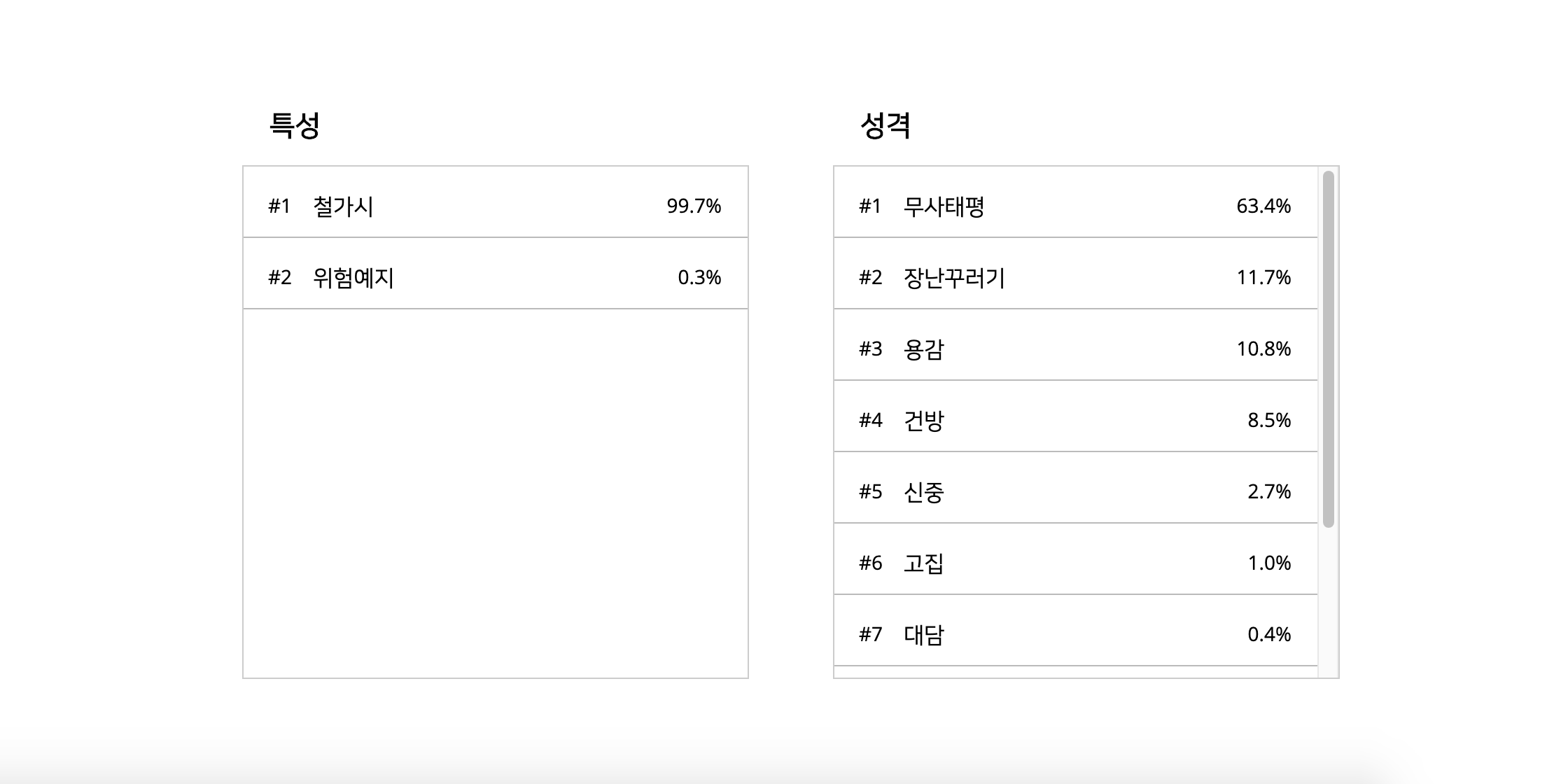 <너트령의 싱글배틀 빈도 순위 추이 확인 화면>