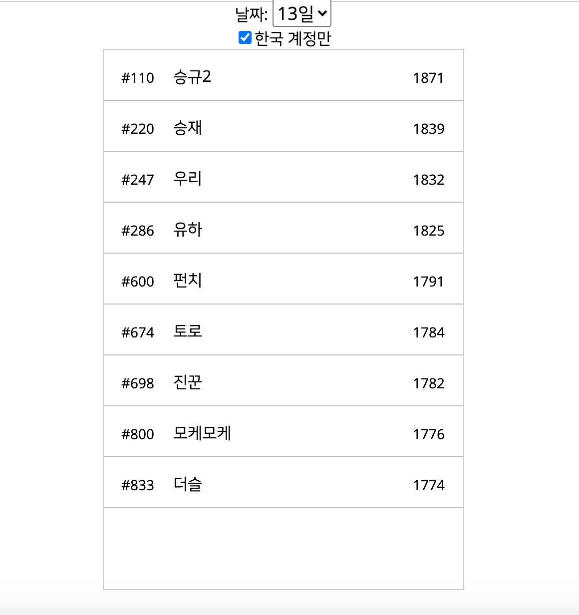 (날짜별 순위는 8월 28일자부터 준비되어 있습니다.)