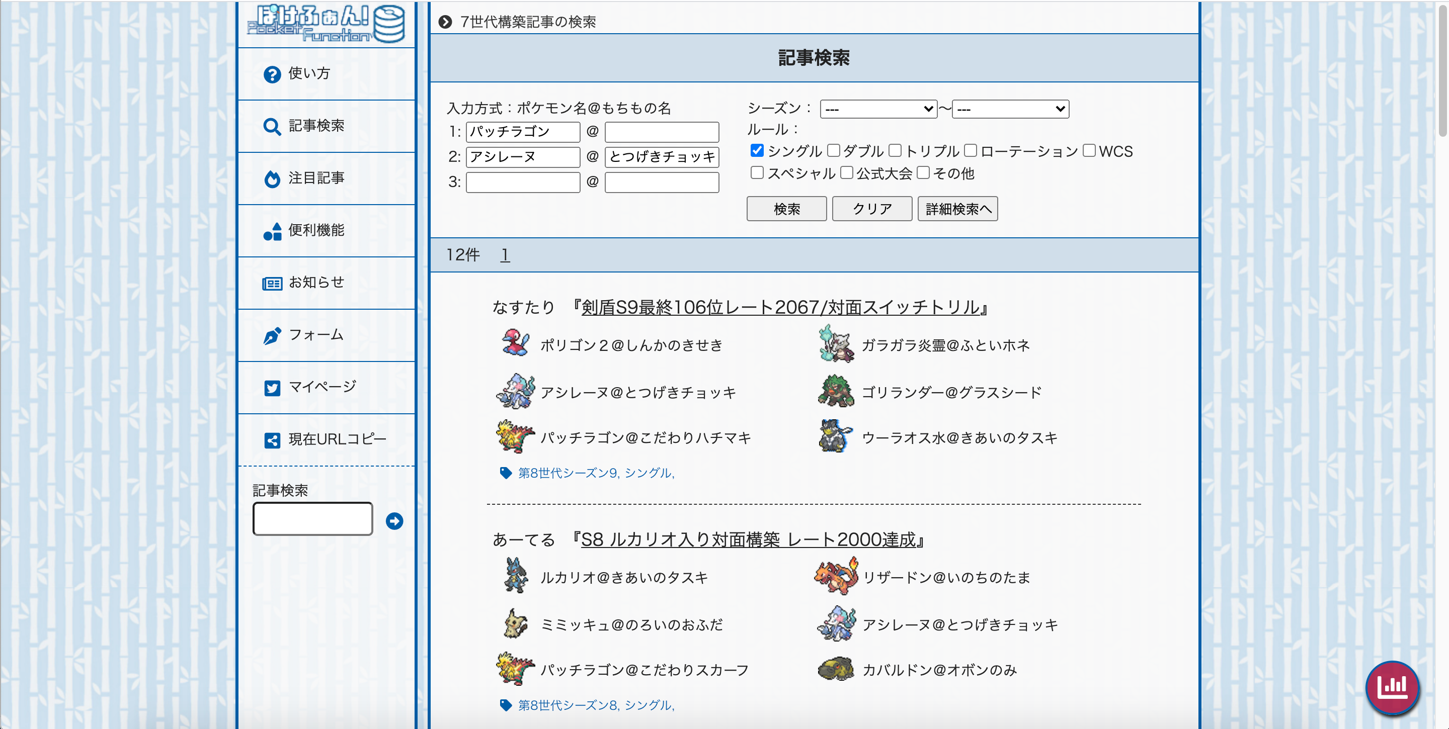 Pokémoem의 포켓몬 도감은 랭크배틀 시즌별, 날짜별 데이터를 제공하며 유저들이 직접 작성하는 샘플 공유 기능 또한 갖추고 있습니다.