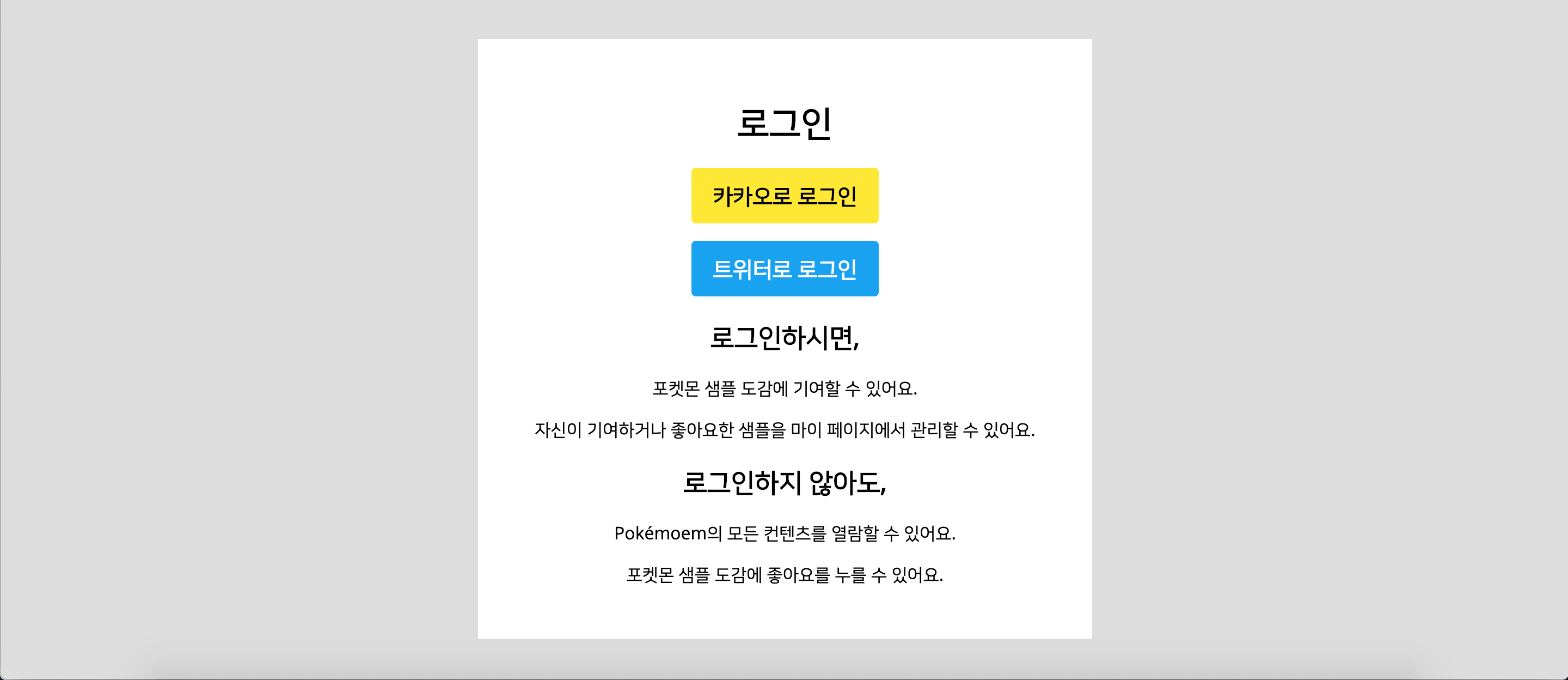 카카오, 또는 트위터 계정 연동으로 간단히 로그인할 수 있습니다.