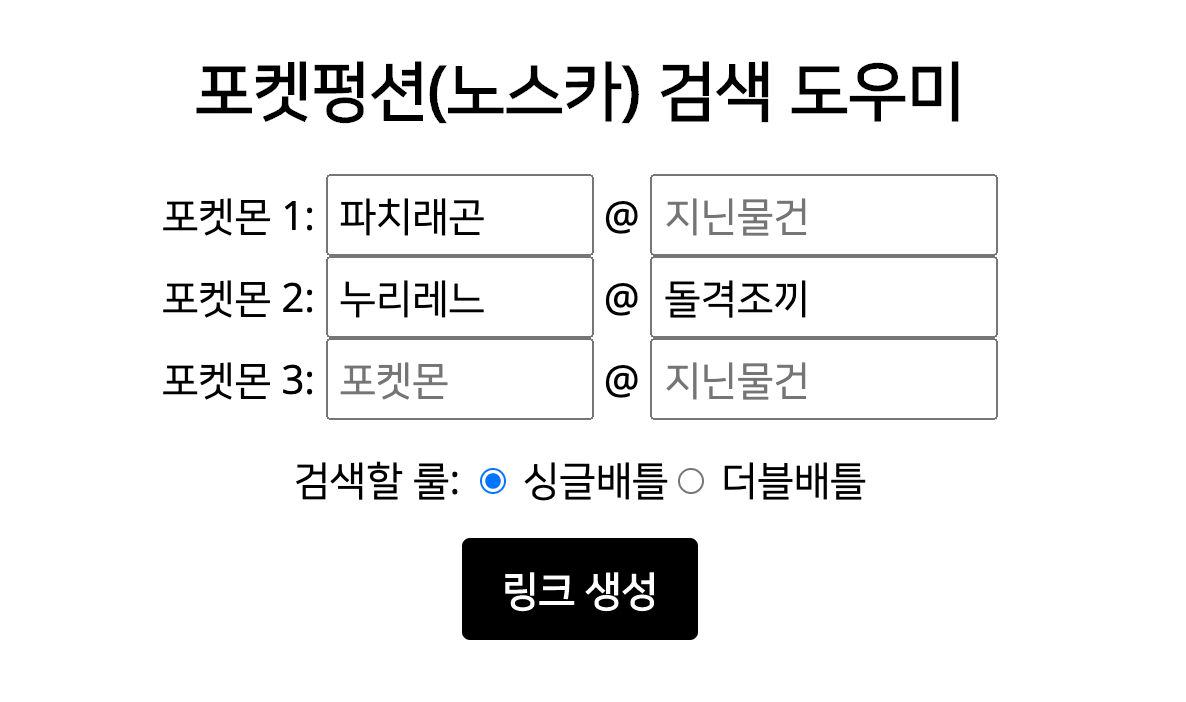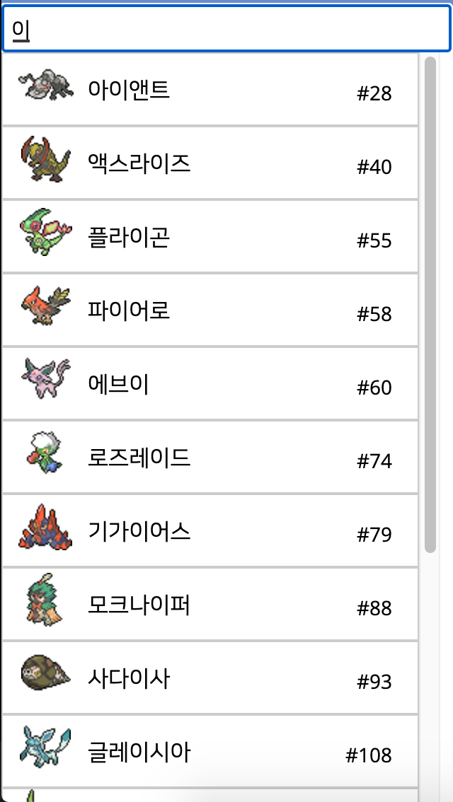 간단한 포켓몬 이름 검색 기능이 구현되어 있습니다. 원하는 포켓몬을 확실하게 찾을 수 있습니다.
