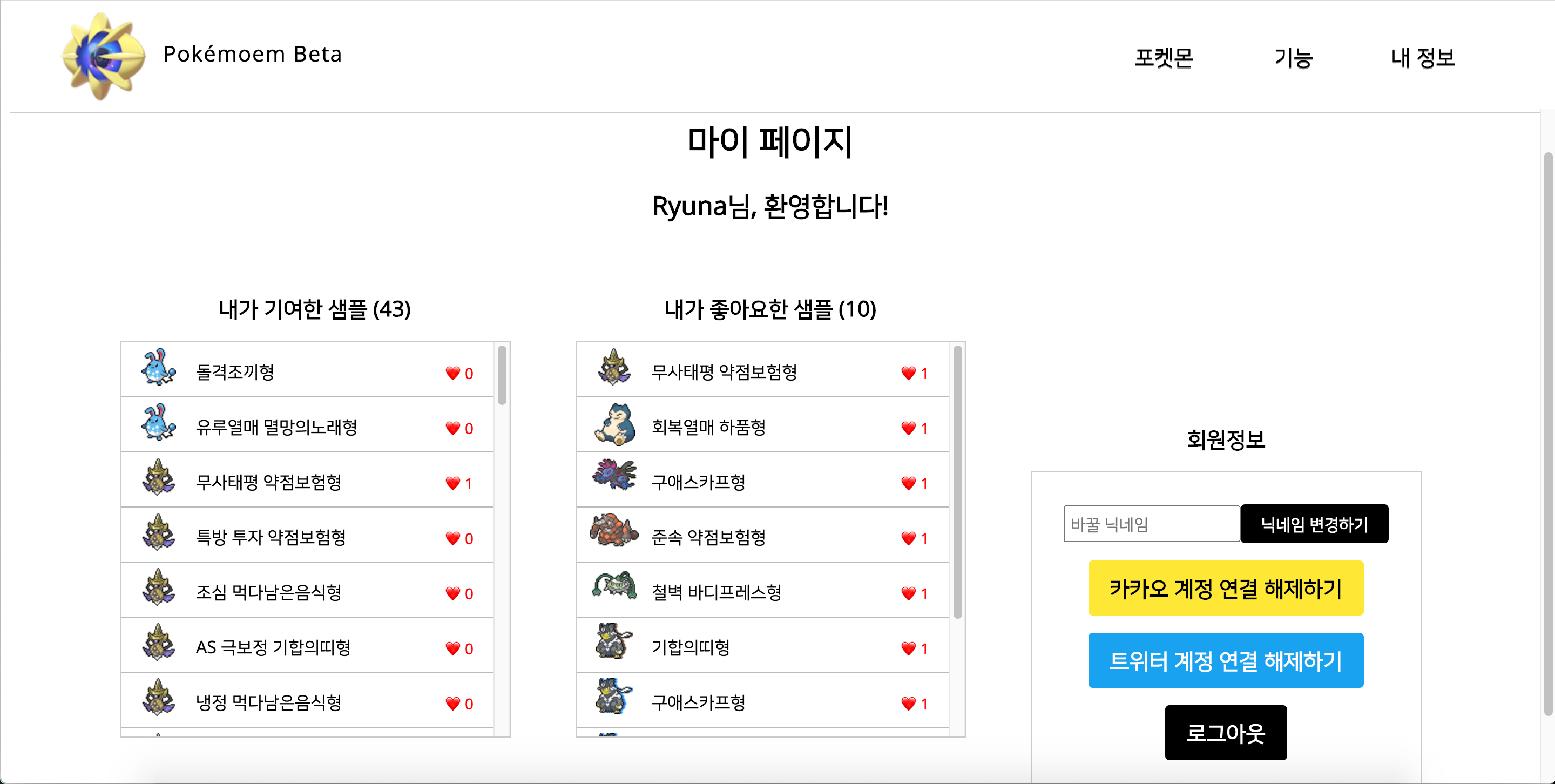 이상으로 웹사이트 포케모음(Pokémoem)에 대한 소개를 마칩니다.