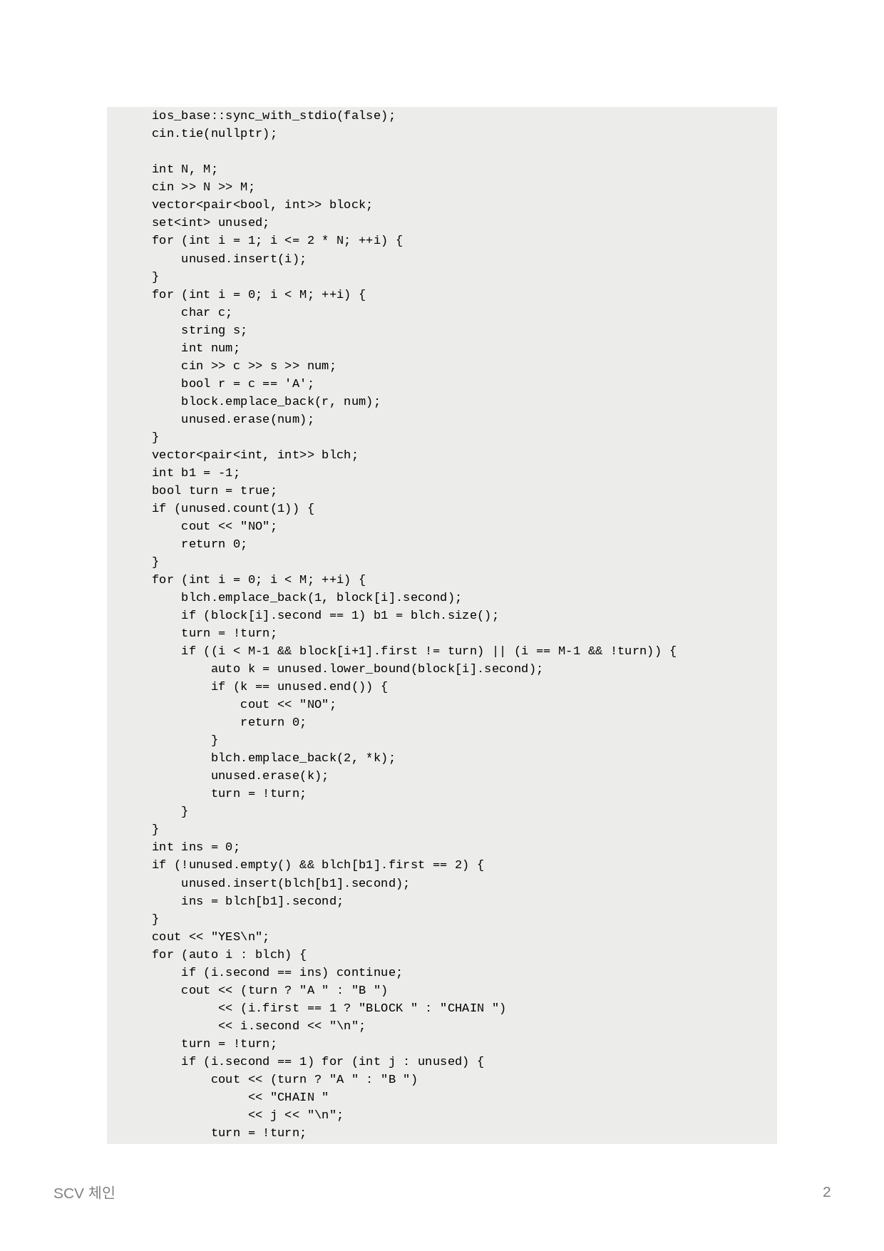 우선 G번의 풀이를 논의했는데, CHAIN 구성이 그리디하게 가능할 것이라고 의견이 모였습니다. 그리고 블록들을 세그먼트 트리로 관리하기로 합니다. 그 시점부터 저는 풀이를 이해하기 어려웠기 때문에 H번을 보기로 합니다.