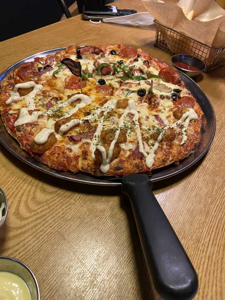 조금 이른 시간이었지만 저녁 식사로 피자를 함께하며 하루를 기쁘게 마무리지었습니다.